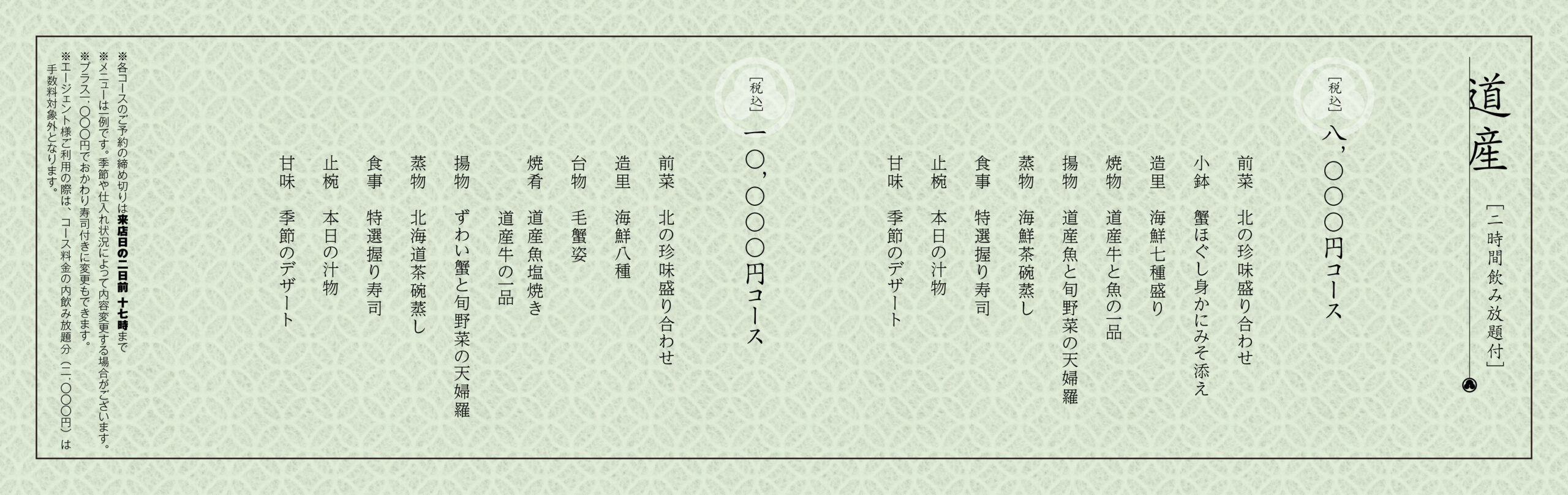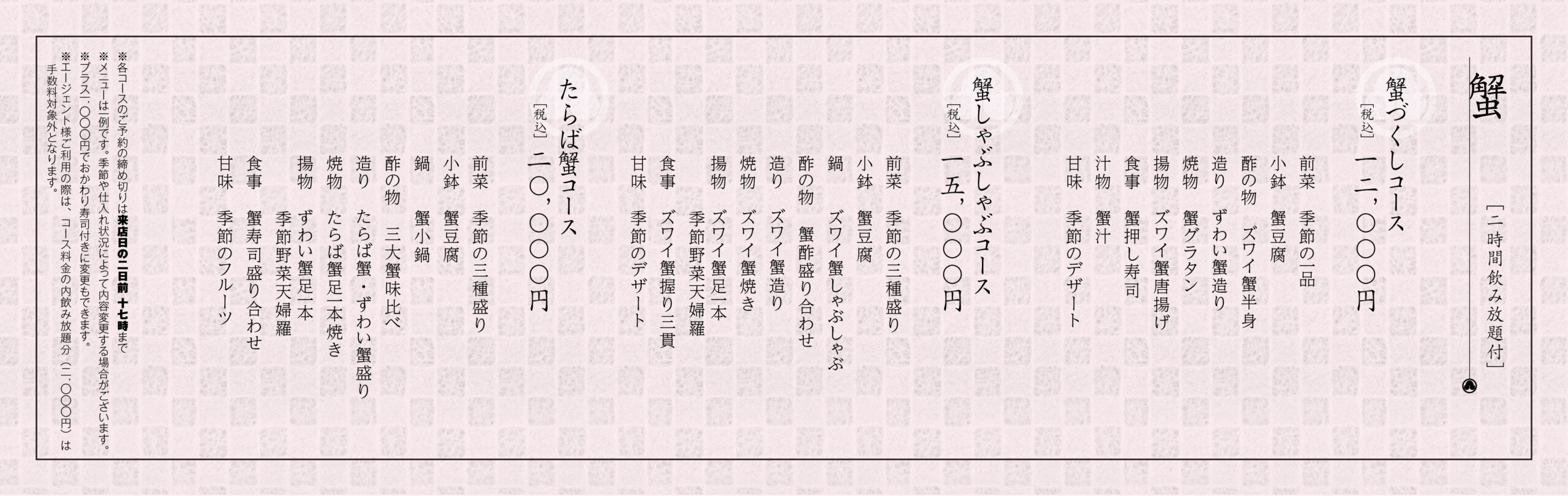 ①蟹づくしコース(税込)12,000円